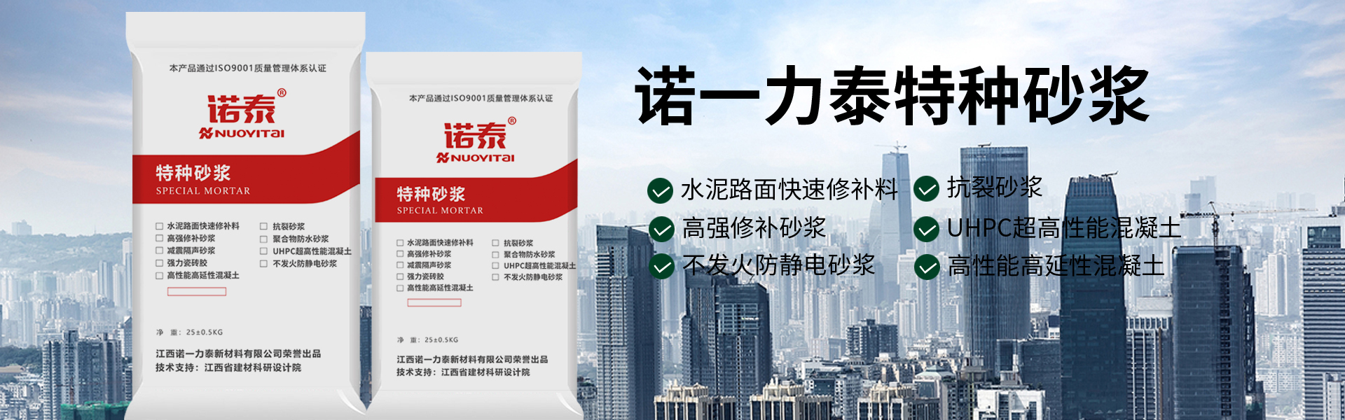 江西諾一力泰新材料有限公司位于江西宜春奉新縣,是專業從事灌漿料水泥路面修補砂漿、抗裂砂漿防水砂漿、保溫砂漿、隔聲砂漿、粘結砂漿等砂漿系列產品生產銷售的廠家。